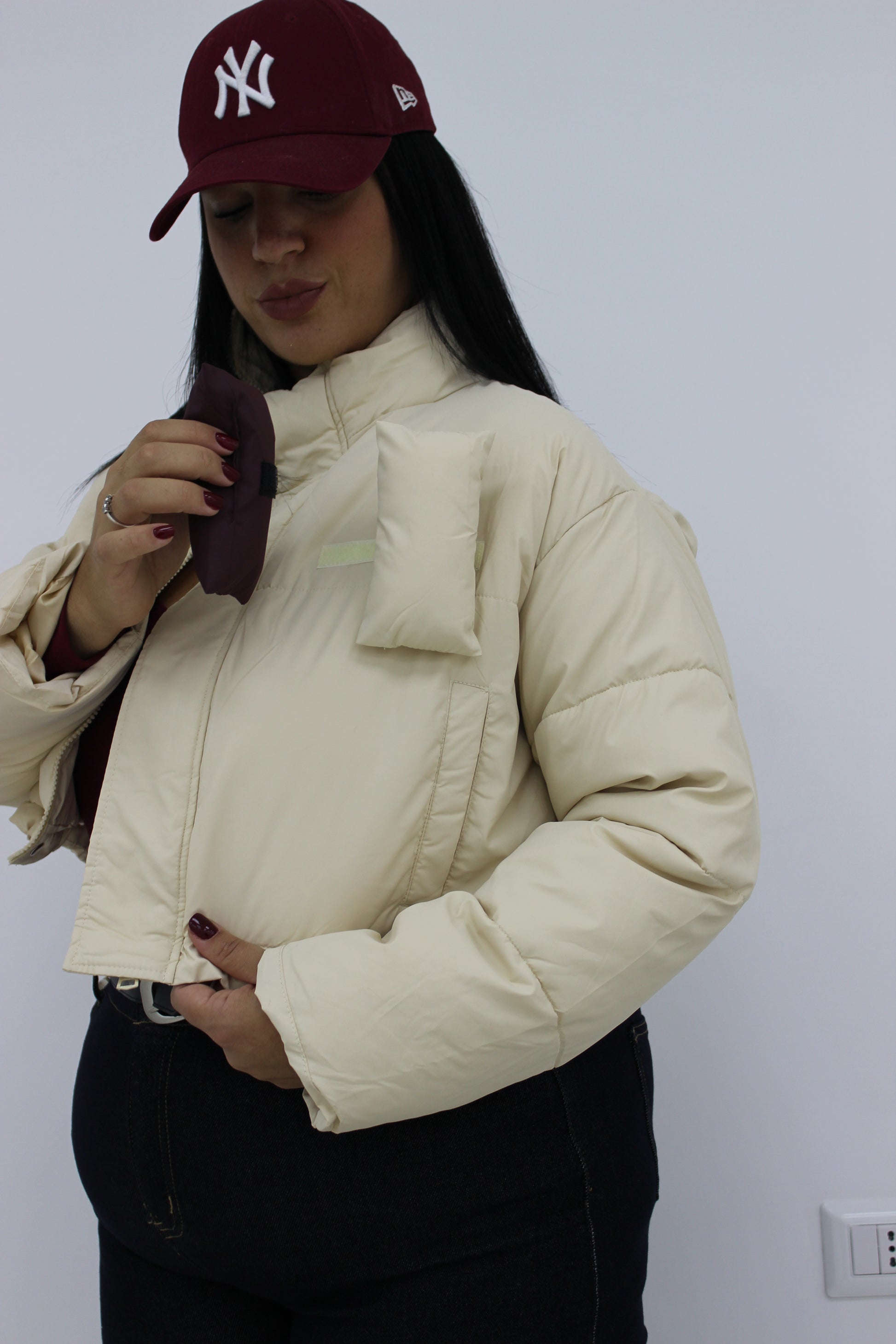 Piumino crop, con zip e bottoni, ed elastico sul fondo regolabile. Taglia unica oversize veste da taglia 40 a 54