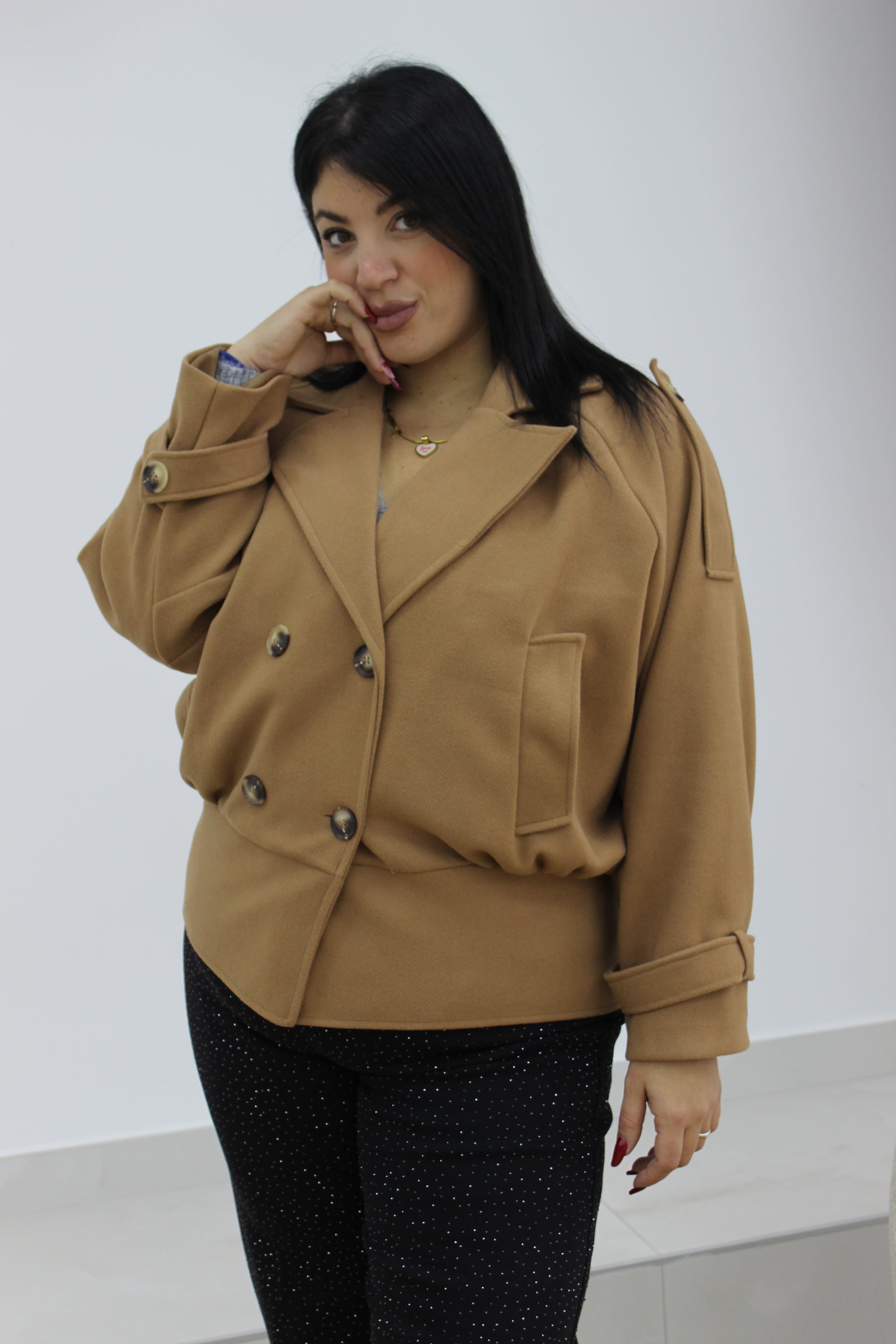 Cappottino foderato, doppio petto , leggermente crop . Taglia unica vestibilità da taglia 48 a 56