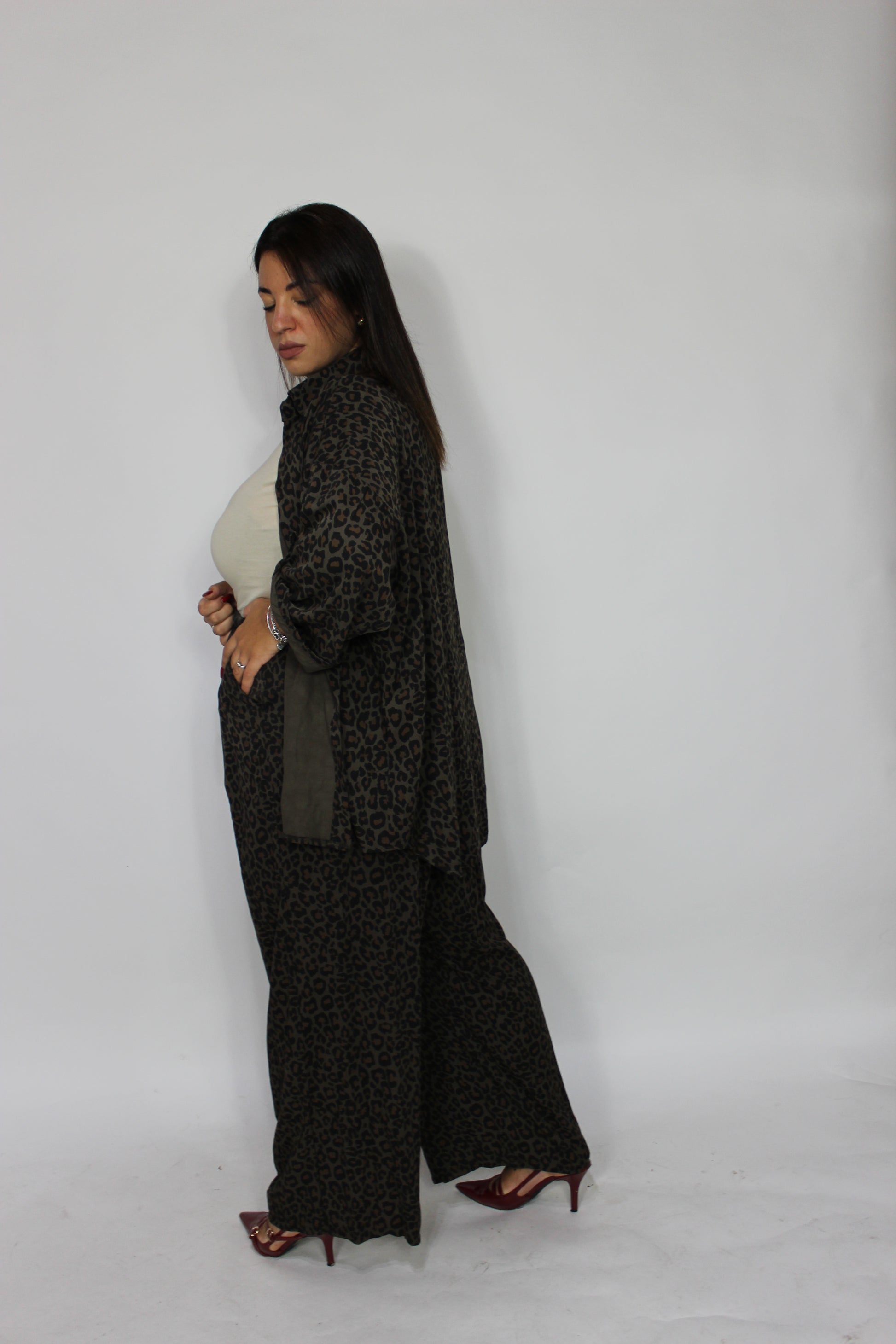 Coordinato pantalone e camicia. In 100% viscosa . Taglia unica con vestibilitá da taglia 48 a 56