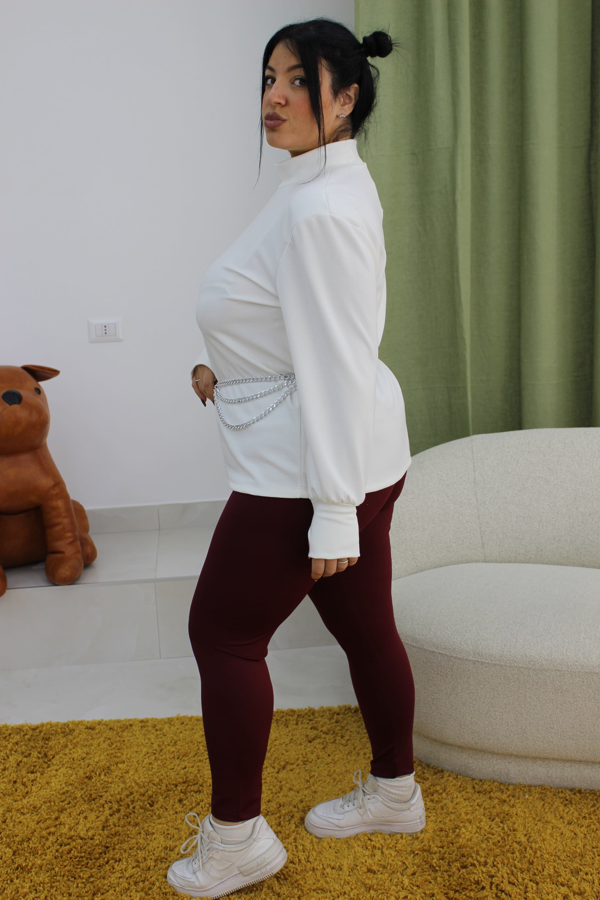 T-Shirt peso felpa con super spallina e mezzo collo. Taglia unica oversize, vestibilità da taglia 40 a 54