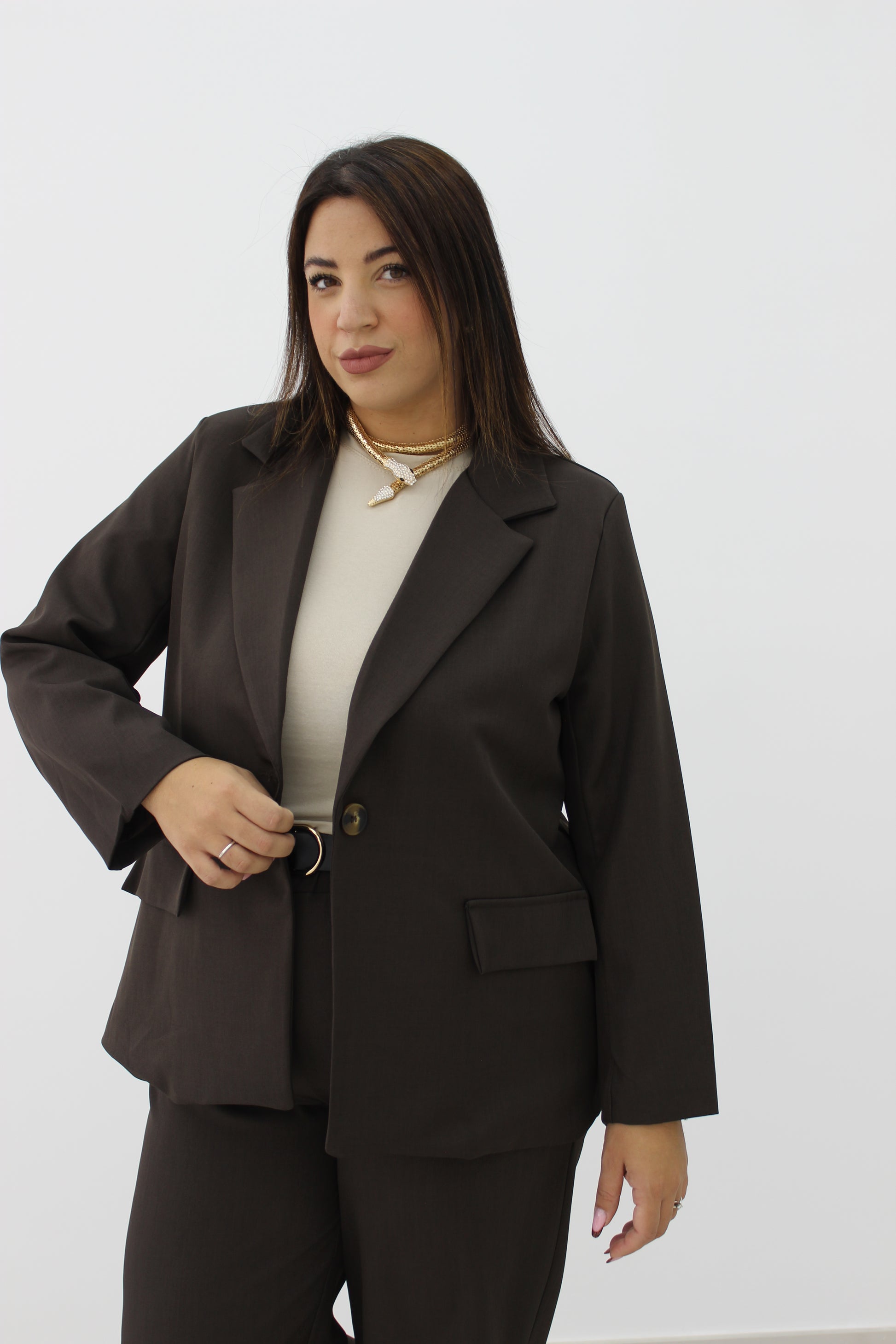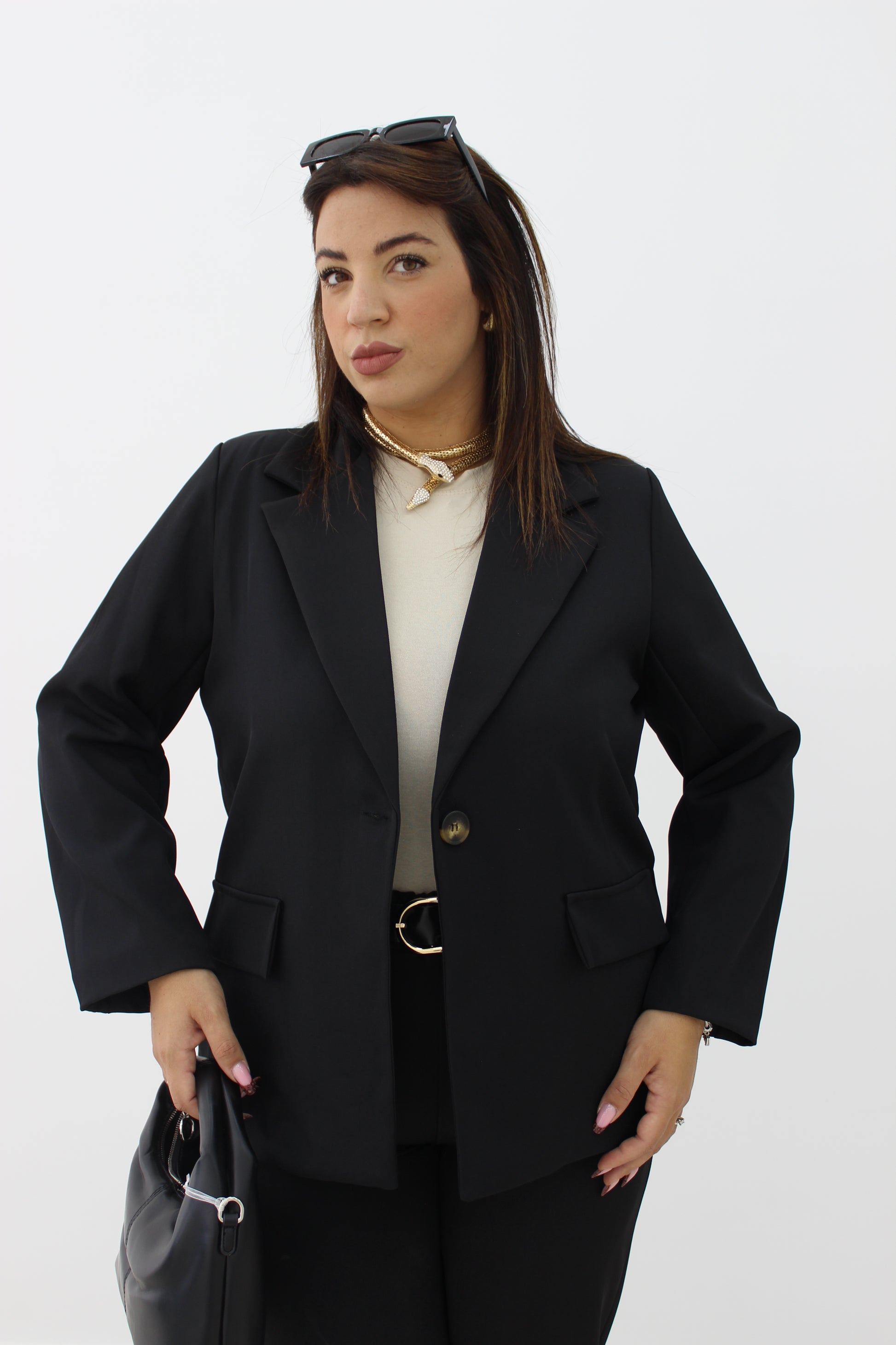 Giacca foderata, taglio dritto con spallina strutturata e mono bottone. Taglia unica vestibilitá da taglia 48 a 54