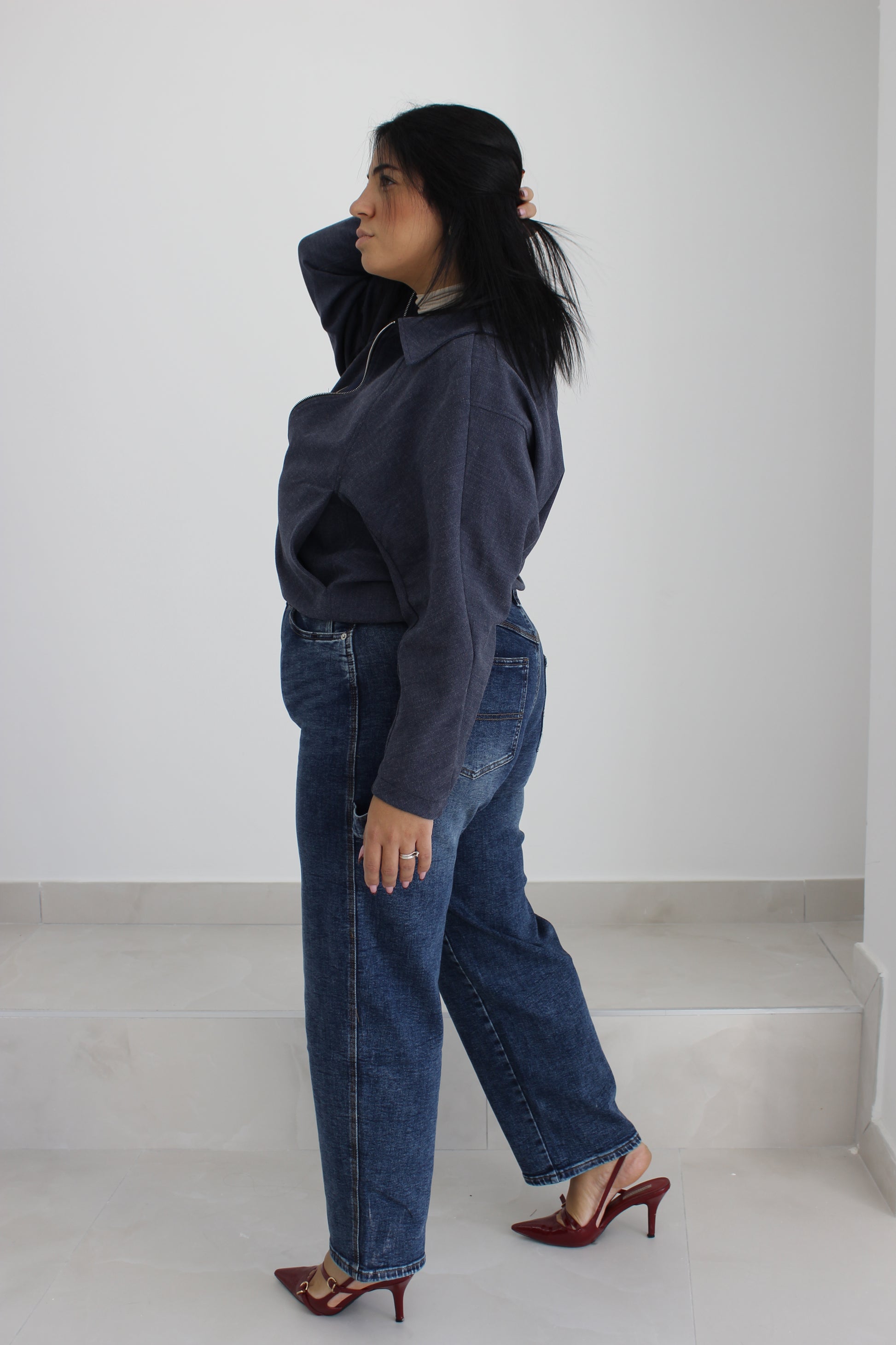 Jeans modello ballon, super elasticizzato. Consigliamo 2 taglie in meno. Giada solitamente è taglia 50/52, di questo jeans indossa taglia 48
