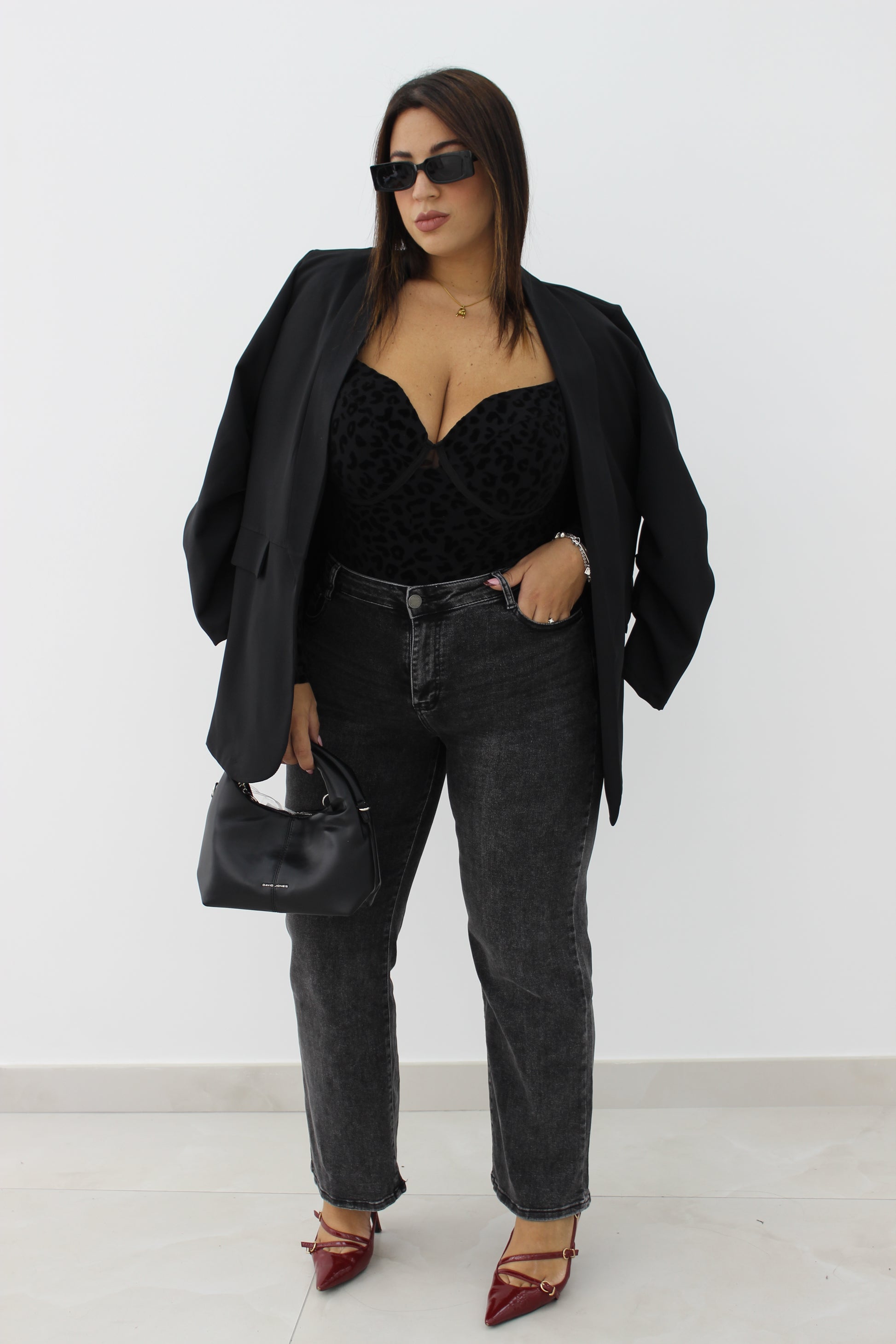Jeans super elasticizzato, vita alta, gamba dritta.