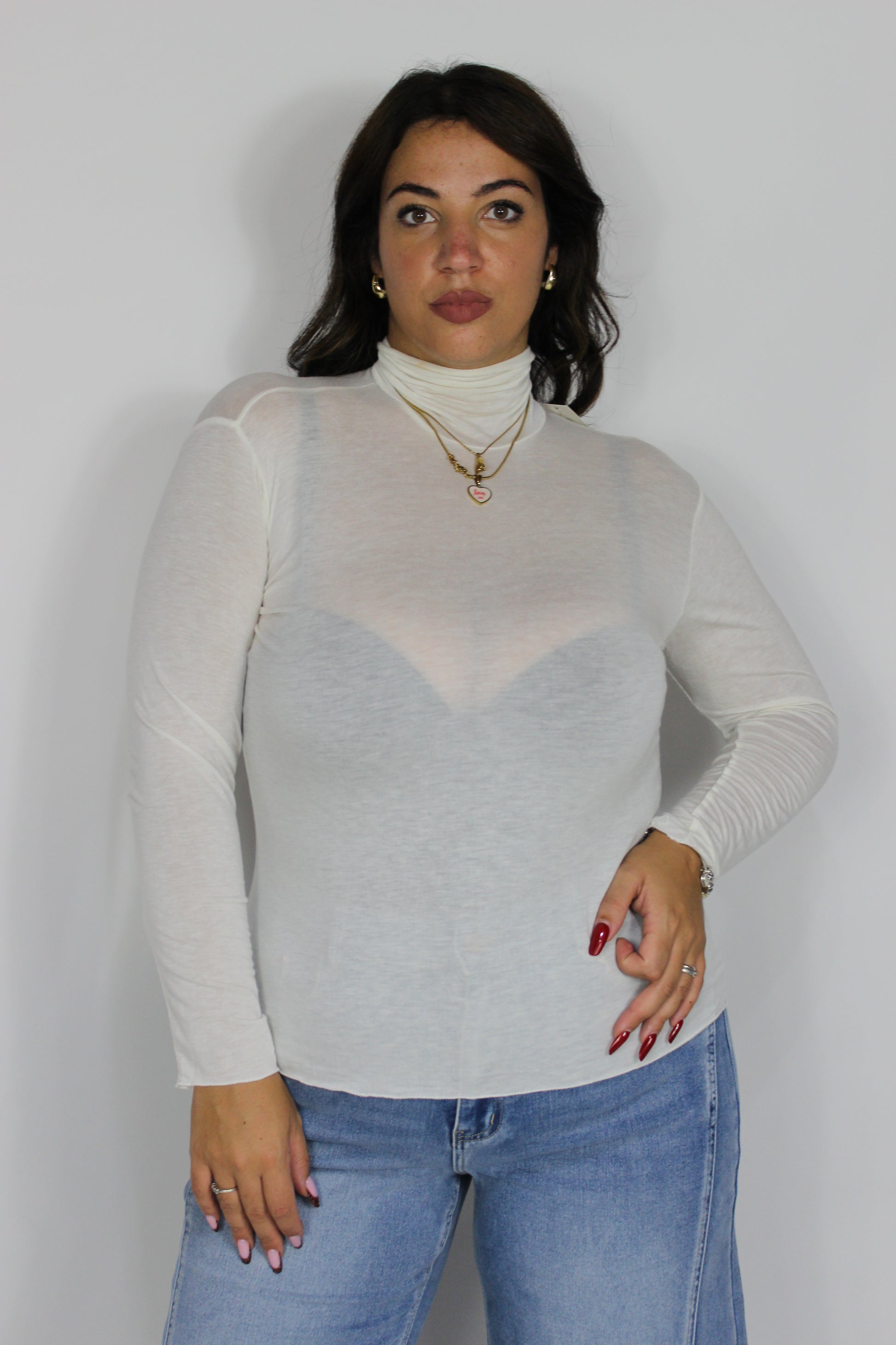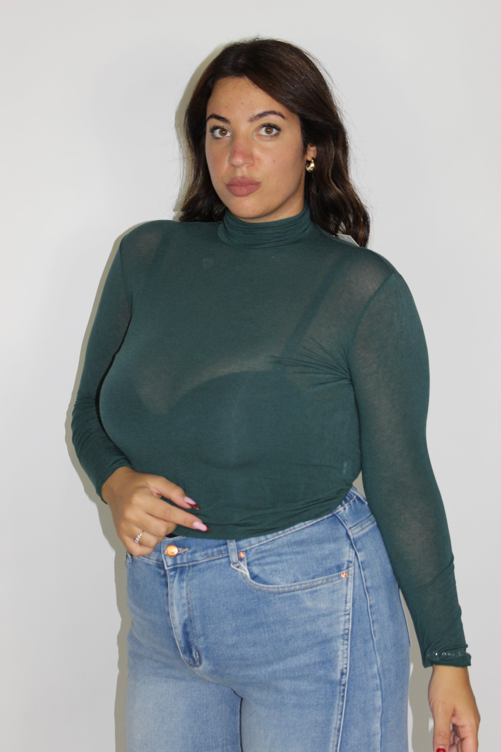 Maglia in Cashmere , collo alto morbido. Tessuto elasticizzato. Taglia unica con vestibilitá da taglia 46 abbondante a taglia 56