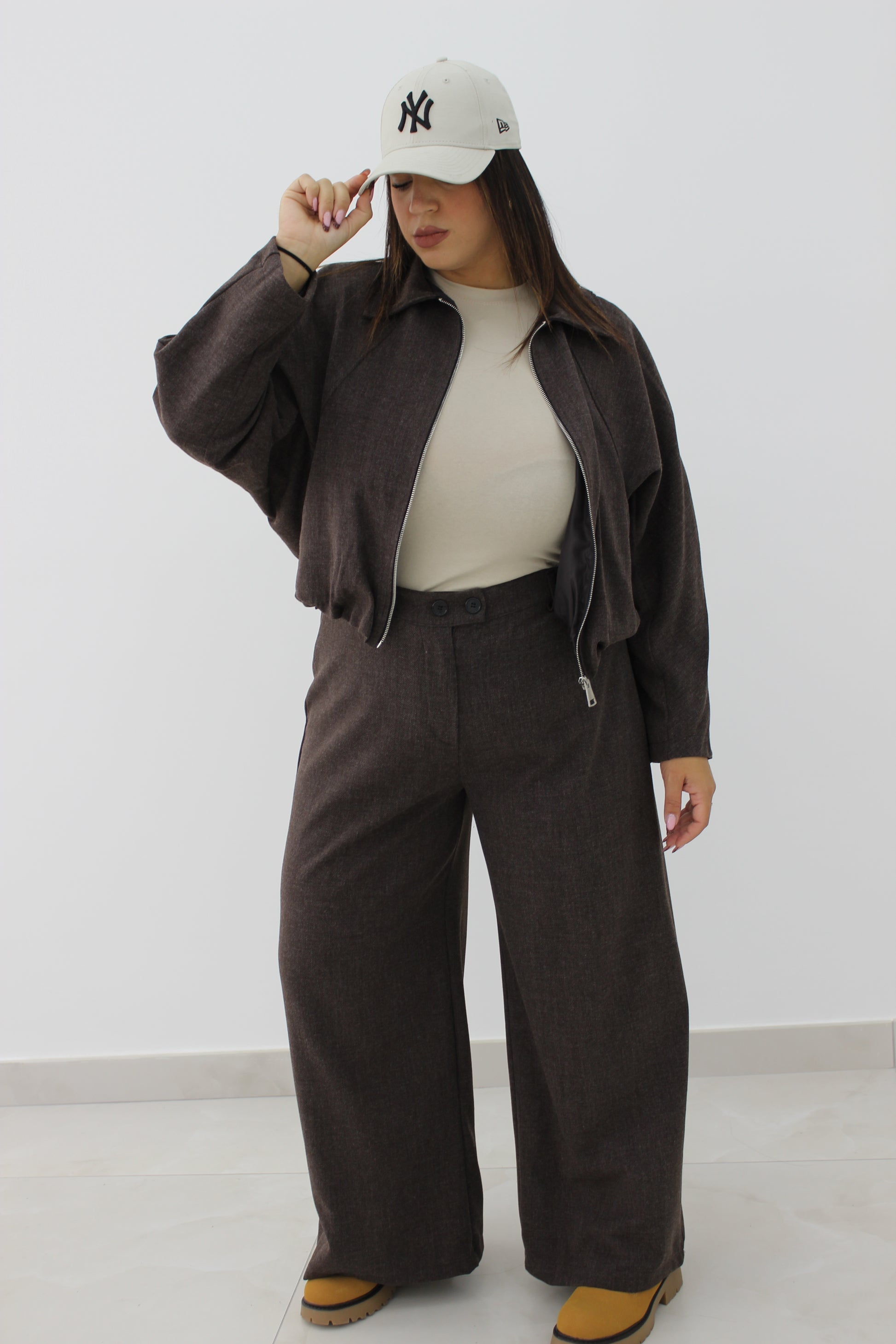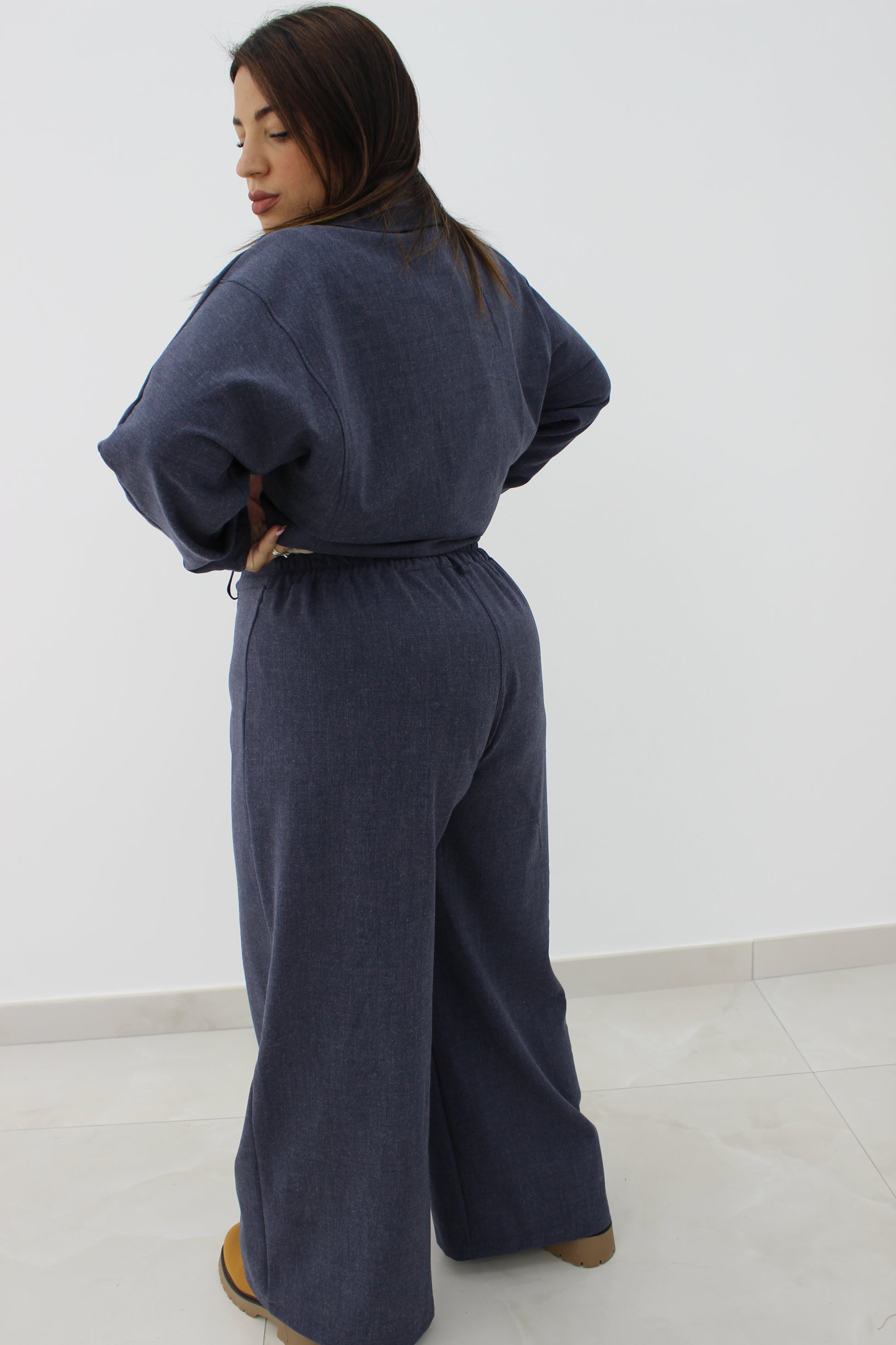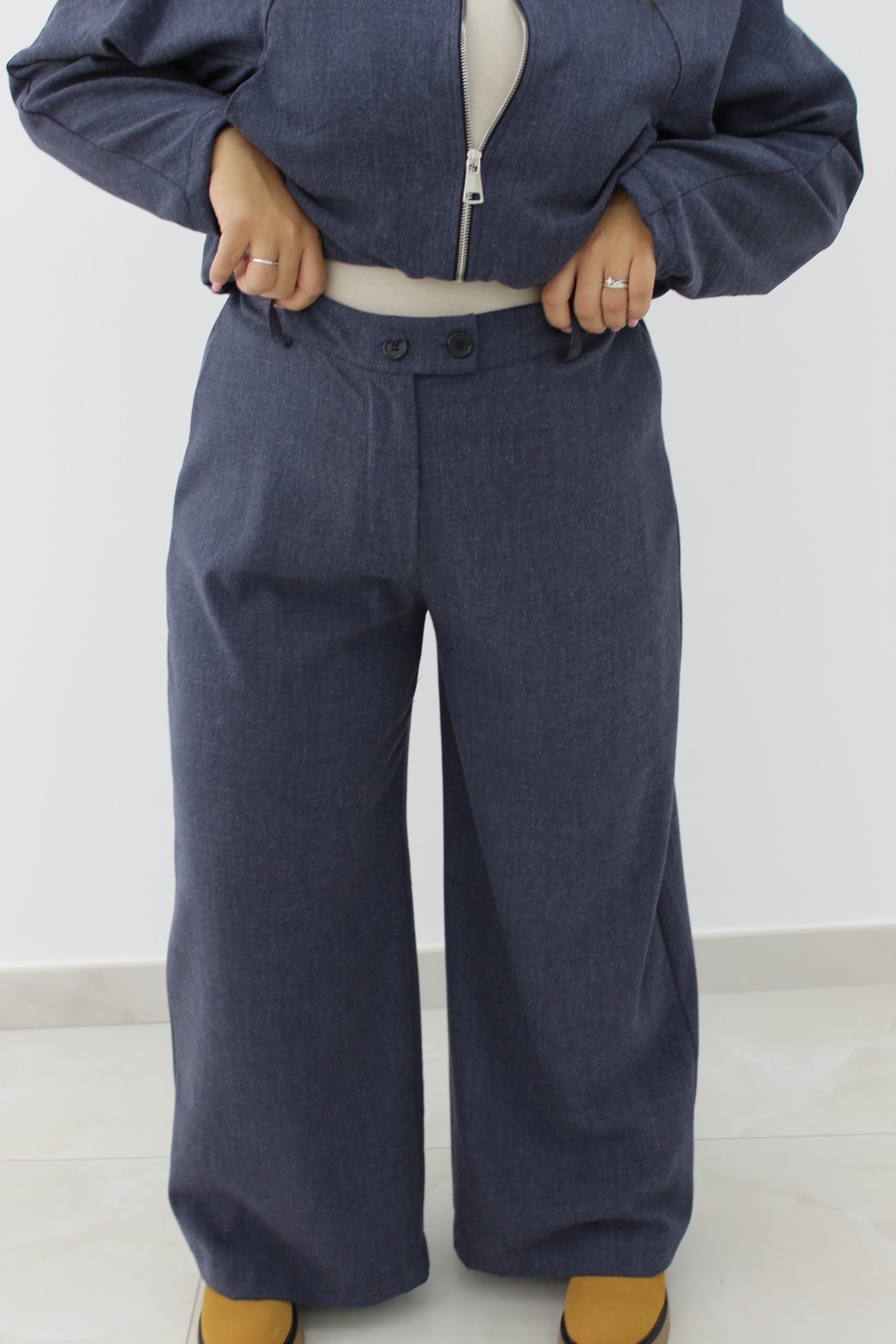 Pantalone tessuto invernale, a palazzo, con zip e bottoni ed elastico sul retro. Taglia unica vestibilitá da taglia 48 a 54 abbondante