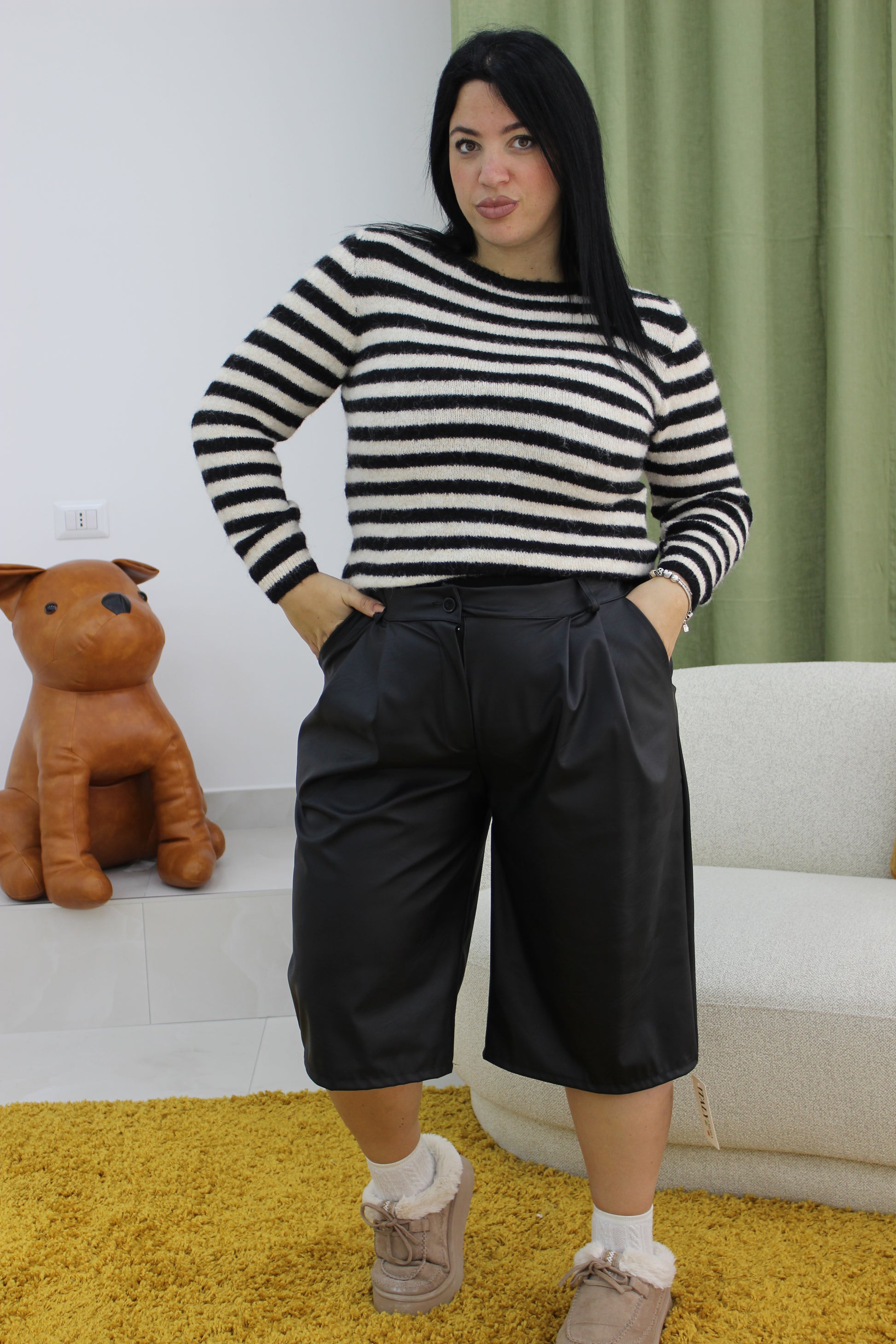 Bermuda in ecopelle con zip,bottone ed elastico sul retro. Taglia unica vestibilitá da taglia 48 a 54