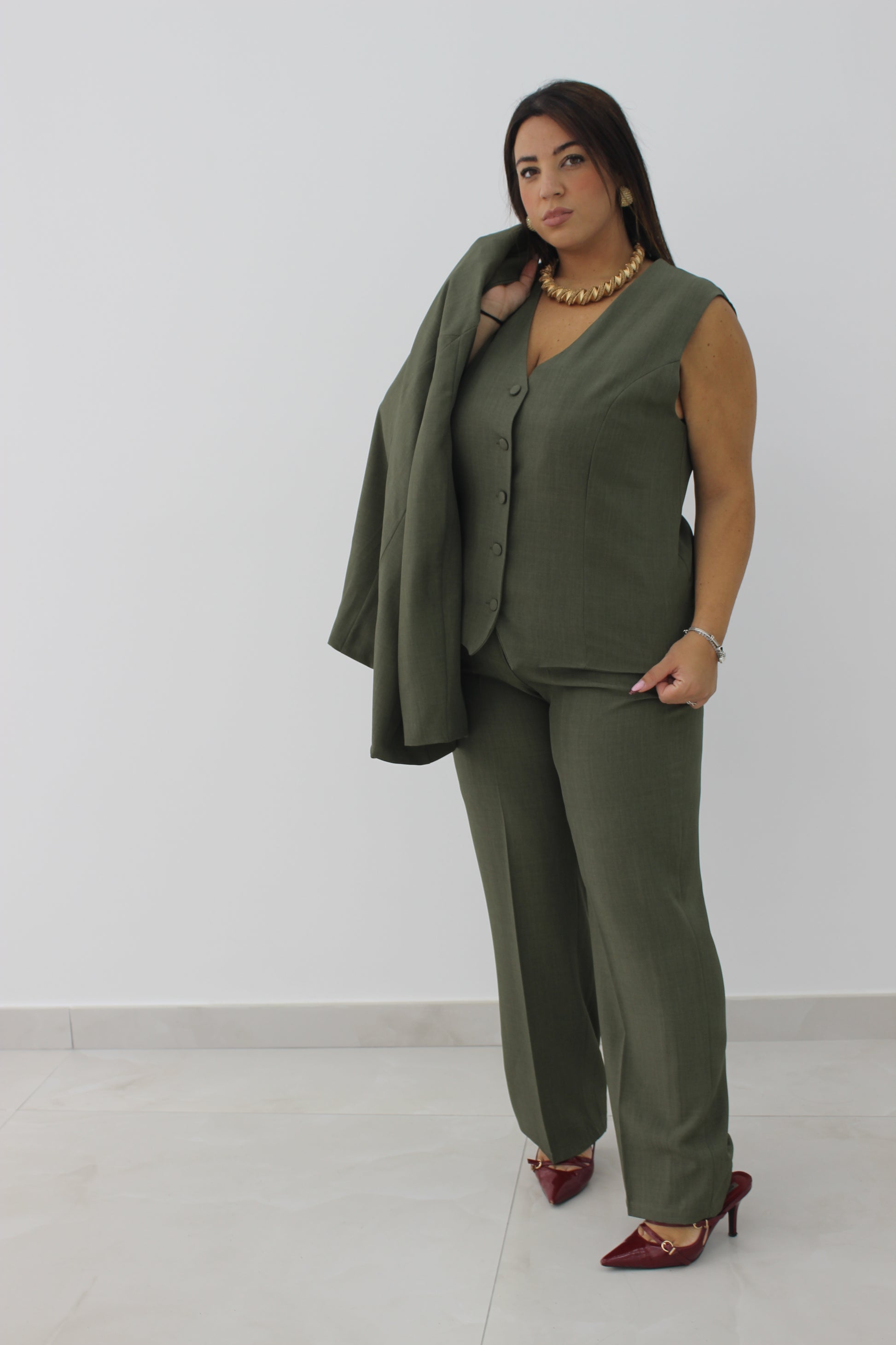 Tailleur composto da giacca,pantalone e panciotto. In taglia unica con vestibilitá da taglia 48 a 54 abbondante
