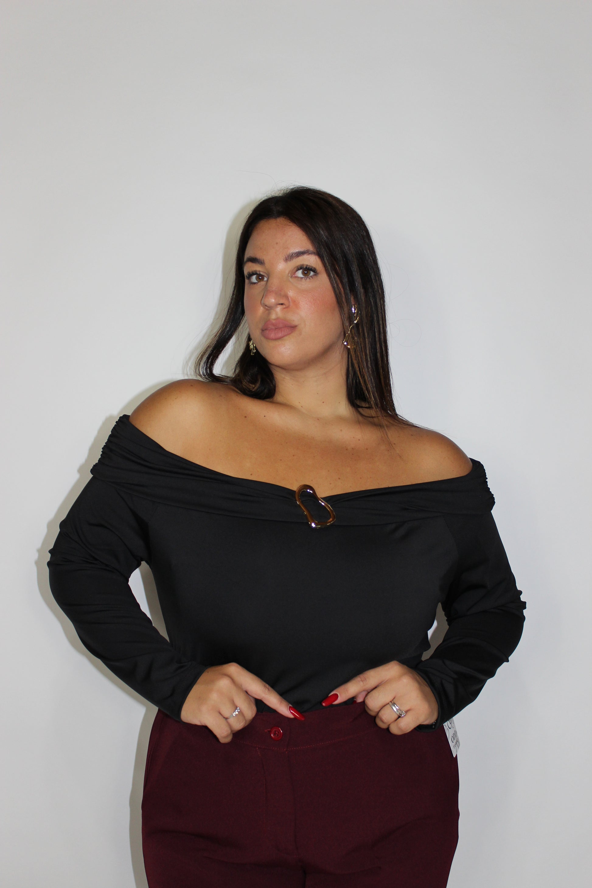 Top in lycra super elasticizzato, con scollo a barca. Taglia unica vestibilitá da taglia 50 a 56